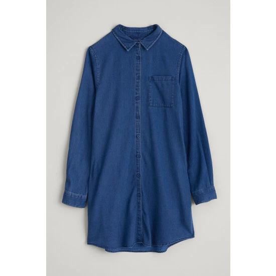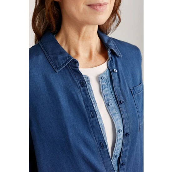 A longline shirt made from a silky-soft blend of EU Ecolabel certified TENCEL™ Modal and cotton. With a classic collar, button-through front and chest patch pocket, we love it paired with everything from leggings and narrow trousers to skirts.