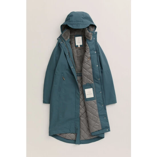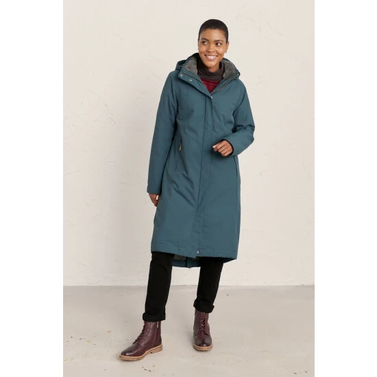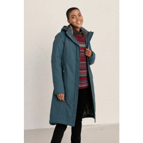A Seasalt favourite, the Janelle coat has a feminine, relaxed fit perfect for adding layers underneath. Warm, waterproof and breathable, its upper is lined in cosy fleece, with a quilted lower body. The outer is made from Seasalt’s soft yet hardwearing Tide Cycle® fabric, which takes less energy to make than non-recycled equivalents and reduces waste, like single use plastic, going to landfill. Tested against unforgiving Cornish weather, it has lots of technical details, like a removable, adjustable hood, a two-way zip and roll back cuffs. Seasalt have even added subtle reflective strips on the cuffs for days when dusk catches you out.