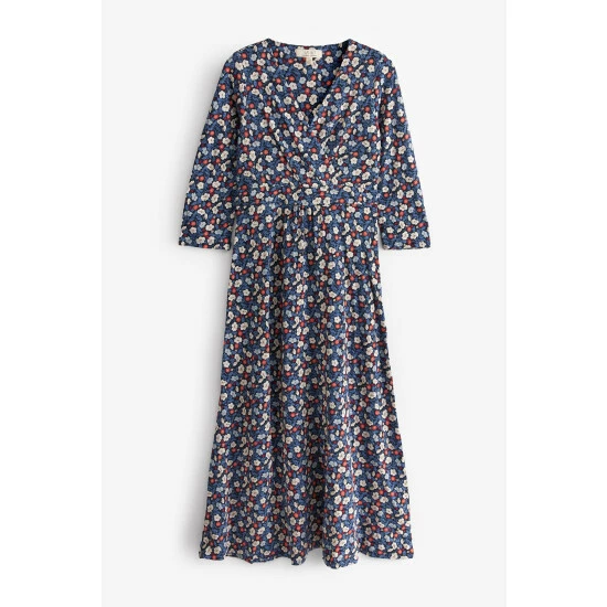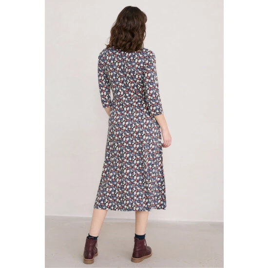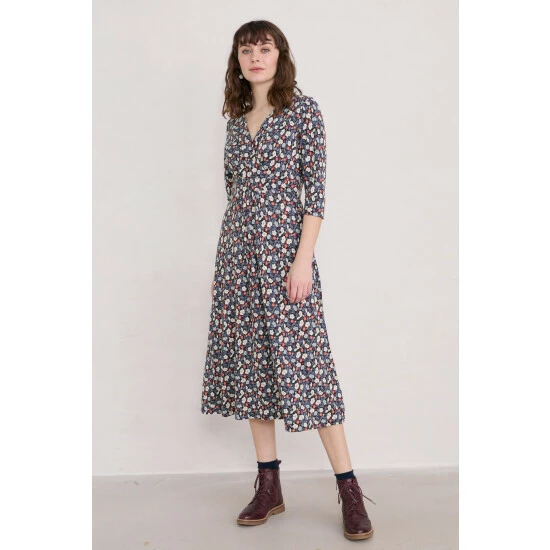 A dress made from soft and breathable organic cotton in a unique Seasalt print. This A-line, midi-length style has a feminine, wrap-effect V-neck finished with subtle gathers, and ¾ length sleeves. Choosing organic cotton helps to protect wildlife, workers and soil quality.