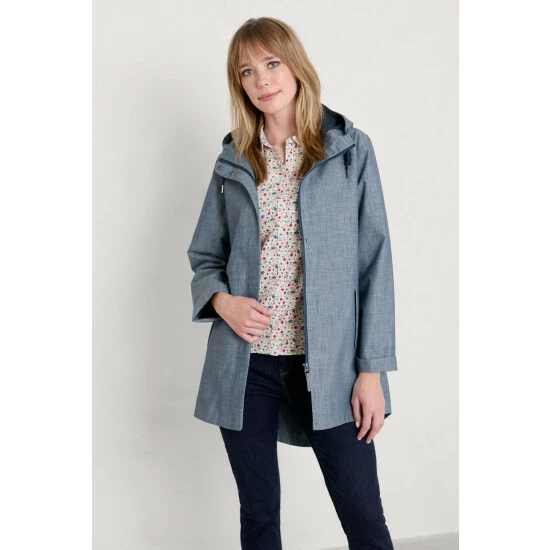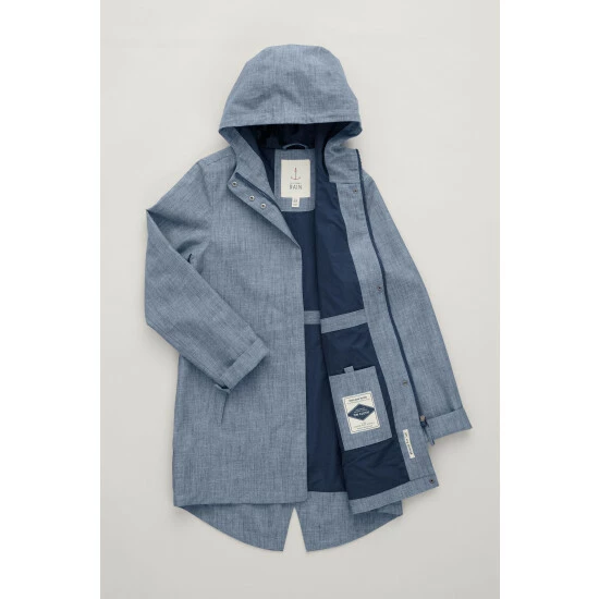 This printed, parka-style coat is part of Seasalt’s rain collection, made from their exclusive organic cotton Tin Cloth® fabric, which is inspired by traditional oilskins. Breathable, windproof and fully waterproof. Technical features include taped seams, zip and popper fastening, an adjustable hood, generous front pockets and an interior phone pocket. With long sleeves and turn back cuffs plus a flattering, dipped style hem with vent.