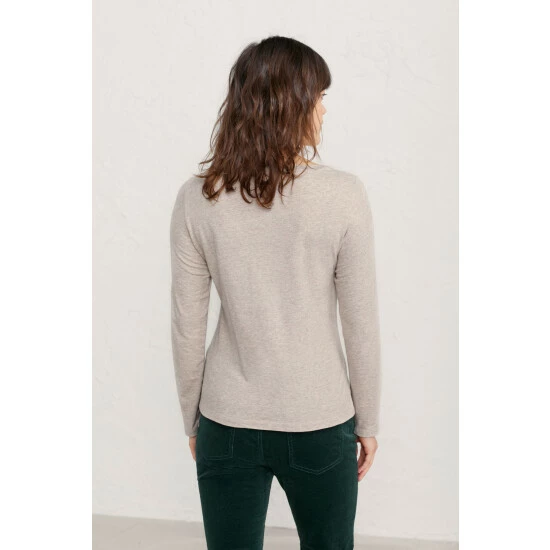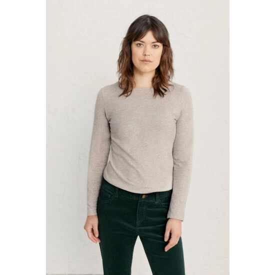 Made from organic cotton jersey with just a touch of stretch, this soft top has a boatneck and subtle texture. A wardrobe essential to layer and wear with skirts and trousers.