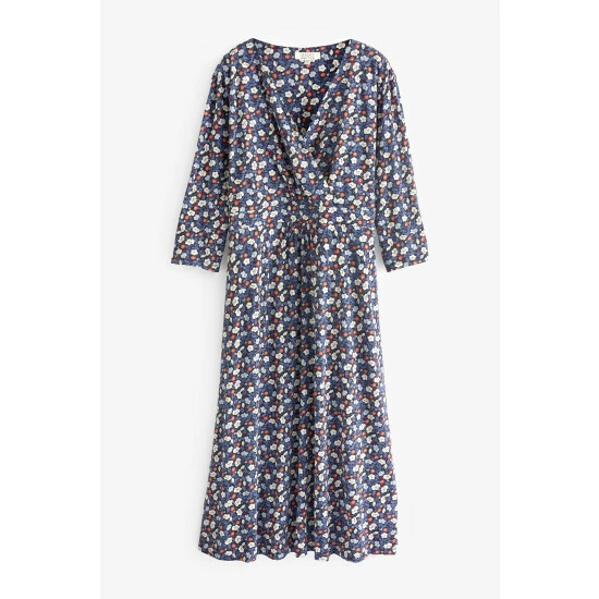 A dress made from soft and breathable organic cotton in a unique Seasalt print. This A-line, midi-length style has a feminine, wrap-effect V-neck finished with subtle gathers, and ¾ length sleeves. Choosing organic cotton helps to protect wildlife, workers and soil quality.