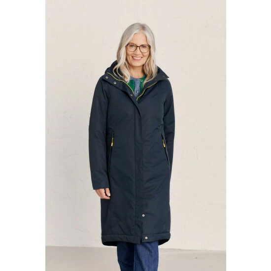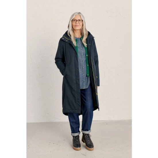 A Seasalt favourite, the Janelle coat has a feminine, relaxed fit perfect for adding layers underneath. Warm, waterproof and breathable, its upper is lined in cosy fleece, with a quilted lower body. The outer is made from Seasalt’s soft yet hardwearing Tide Cycle® fabric, which takes less energy to make than non-recycled equivalents and reduces waste, like single use plastic, going to landfill. Tested against unforgiving Cornish weather, it has lots of technical details, like a removable, adjustable hood, a two way zip and roll back cuffs. Seasalt has even added subtle reflective strips on the cuffs for days when dusk catches you out.